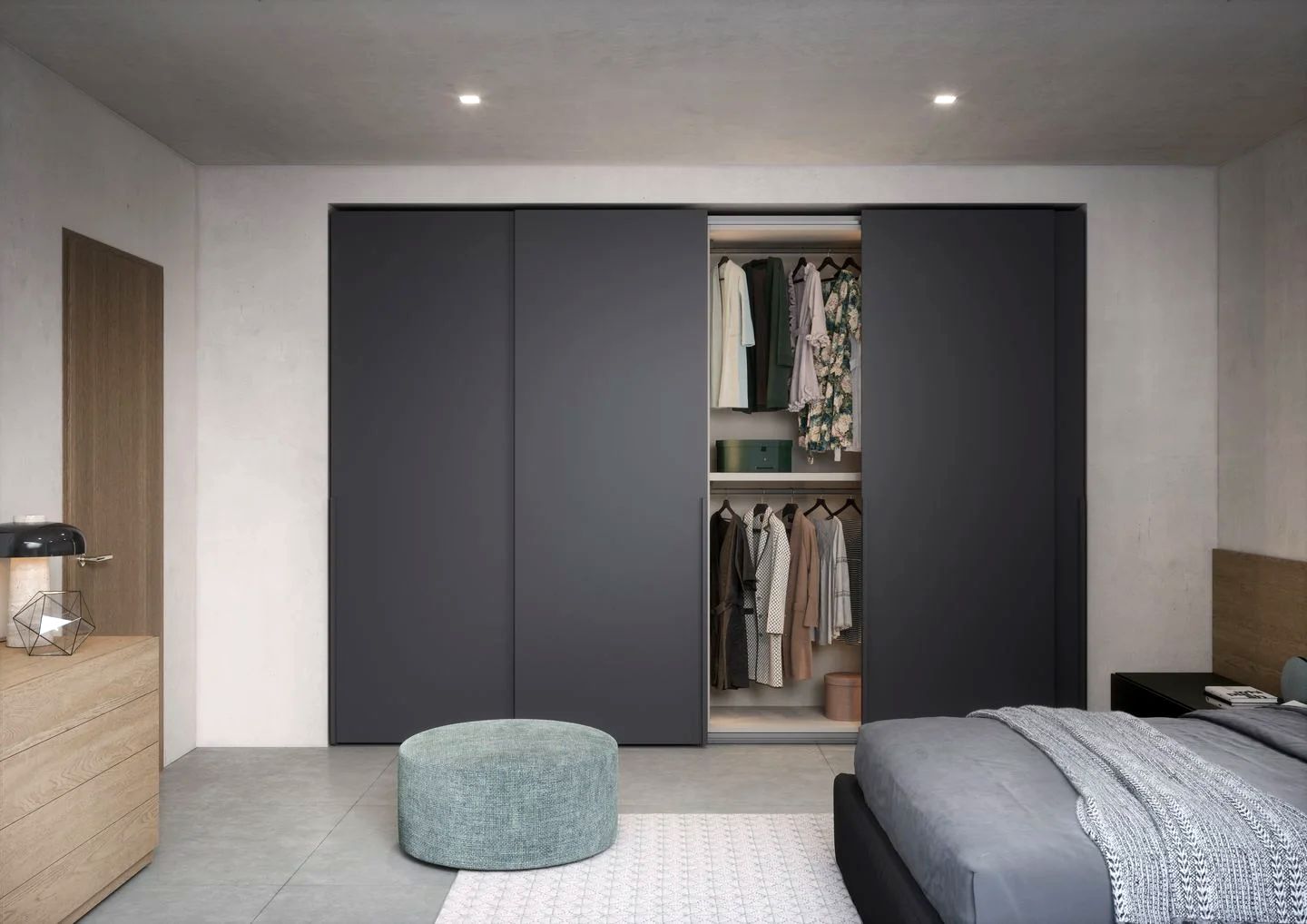 Camera matrimoniale legno e nero