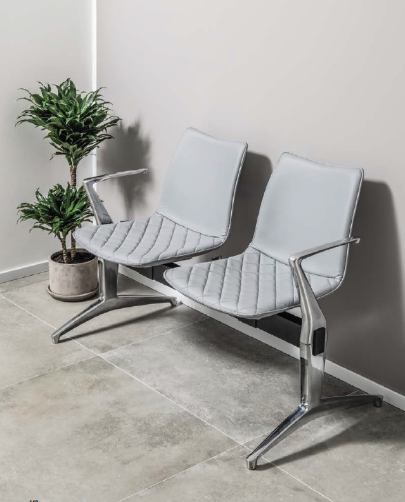 Struttura in metallo con gambe o con razza a 5 ruote; disponibile anche con seduta girevole.