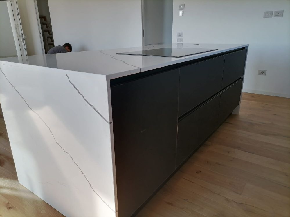 Per rispondere alla richiesta di avere un grande piano di lavoro, nel progetto è stata inserita un’ ampia isola centrale.