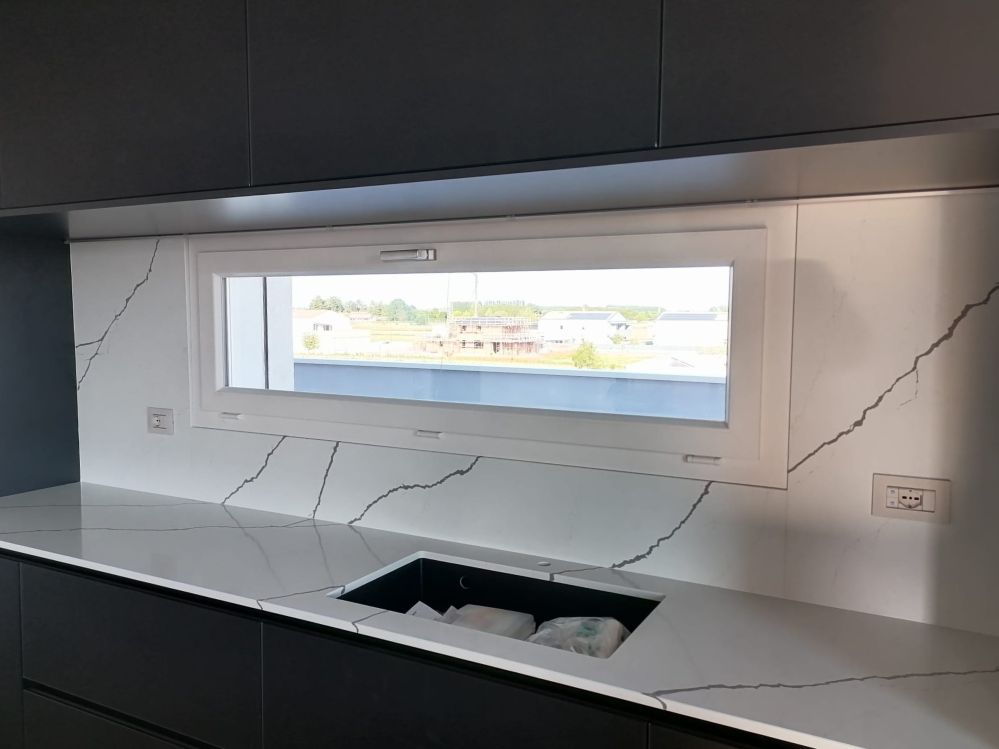 Osservate bene le foto della cucina. Abbiamo parlato di contrasti tra il bianco ed il nero, di gole e zoccoli in alluminio, ma c’è un dettaglio che sfugge a tutte queste regole..