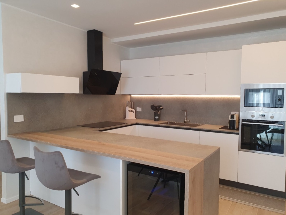 Cucina moderna angolare con penisola: luce, funzionalità e progettazione su misura