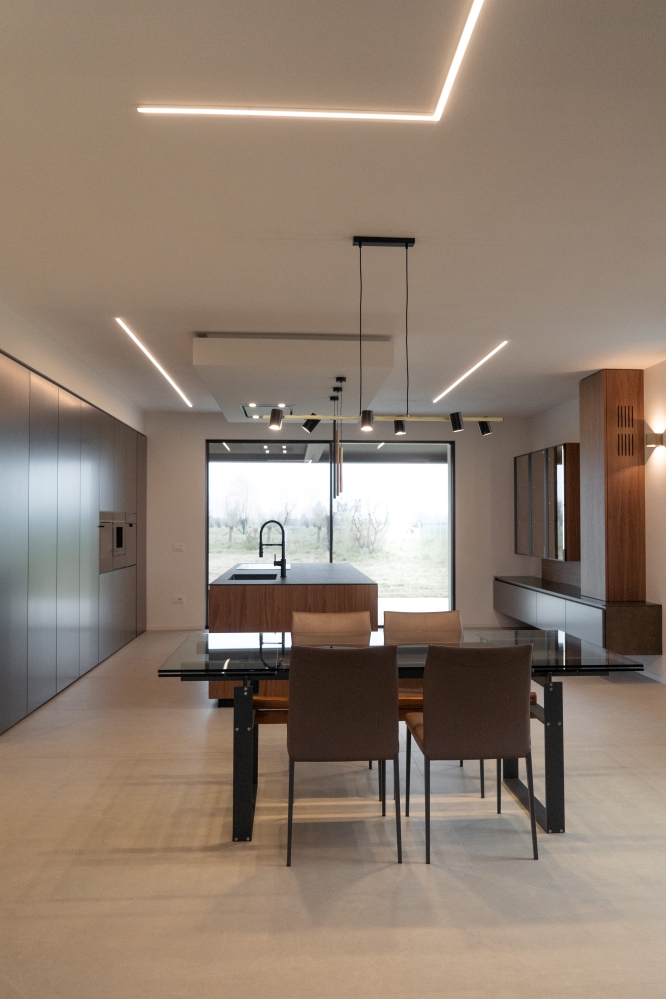 Le sapienti scelte di illuminazione contribuiscono ulteriormente a creare un’atmosfera sofisticata per un risultato di altissimo design.