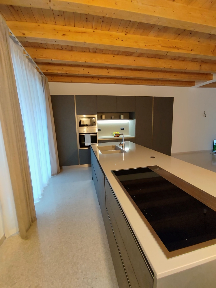 Ed è proprio quel guizzo che abbiamo visto quando abbiamo progettato questa cucina dalla disposizione diversa, forse insolita, ma estremamente funzionale nell’ambiente in cui si trova.