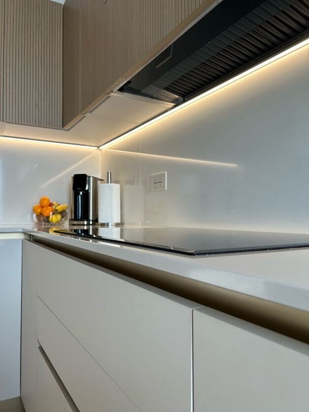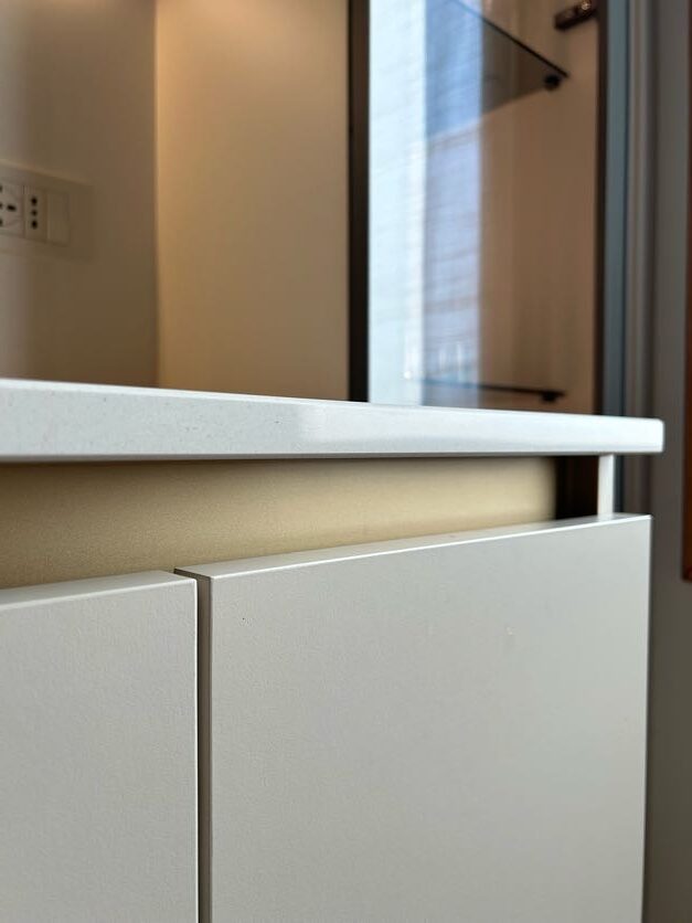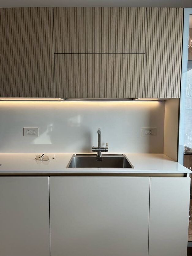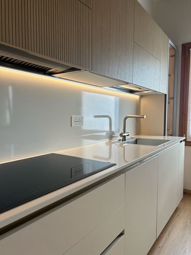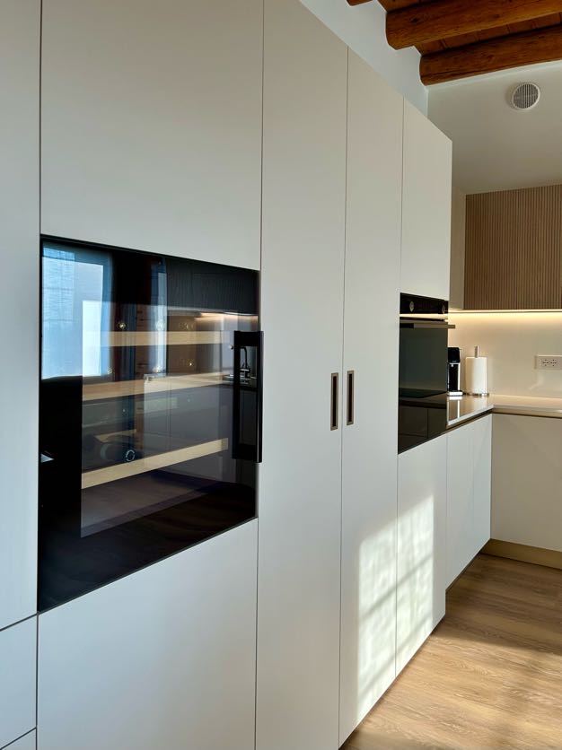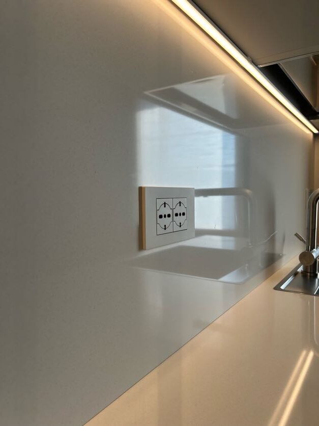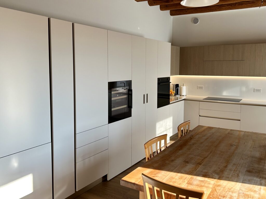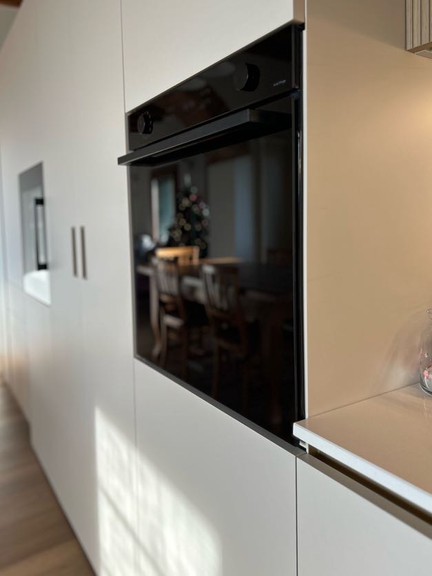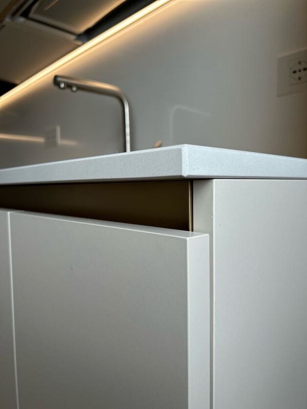 Una delle differenze tra una cucina standard e una cucina firmata Visma Arredo sta nella cura del post vendita: qualcosa che non si vede, ma che è estremamente importante. Durante la fase di montaggio, i nostri tecnici, sotto la supervisione del progettista Michele hanno realizzato i fori per le placchette delle prese direttamente sul posto, affiancando al progetto del nostro arredatore il rilievo in loco delle misure. Tutto questo garantisce una precisione millimetrica e un’estetica pulita su ogni schienale.